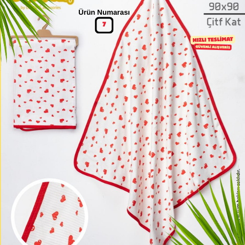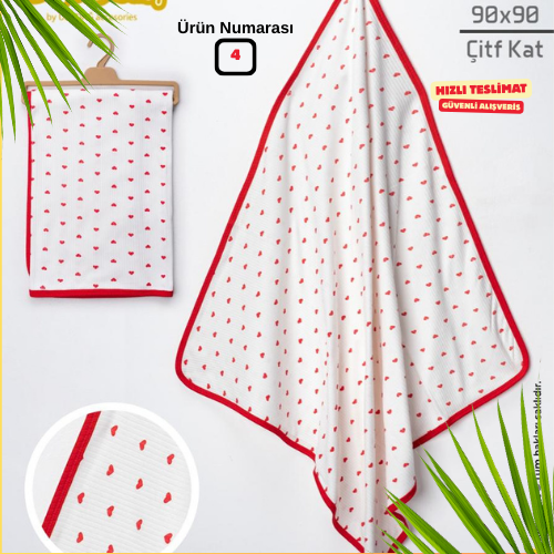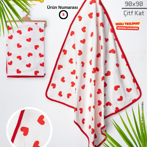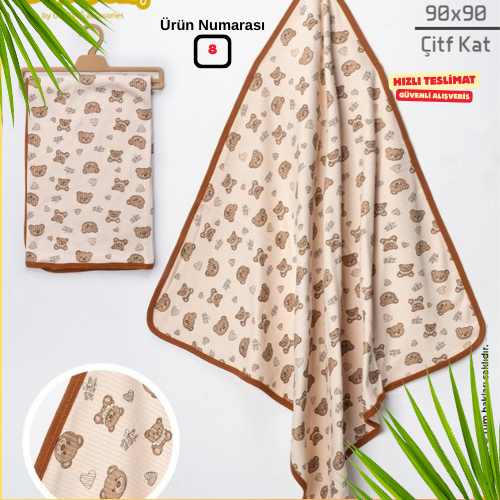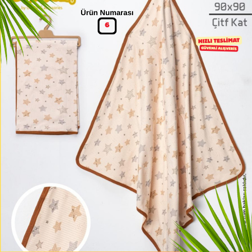Çift katlı ince müslin kumaşı, hem hafiflik hem de sıcaklık dengesi sağlar. Banyo sonrası, arabada, uyku zamanı, emzirme örtüsü veya omuz örtüsü olarak rahatlıkla kullanılabilir.