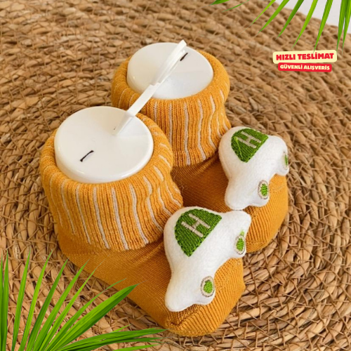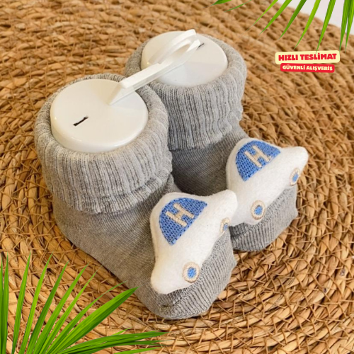 Yumuşacık dokusu ve esnek yapısıyla minik ayakları sıcacık tutan gri arabalı bebek patik çorap, hem şık hem rahat bir seçim. Burnundaki peluş araba modeli bebeğin ilgisini çekerken, kaydırmaz yapısı güvenli adımlar sağlar. Yeni doğan ve 0–12 ay arası kullanım için idealdir.